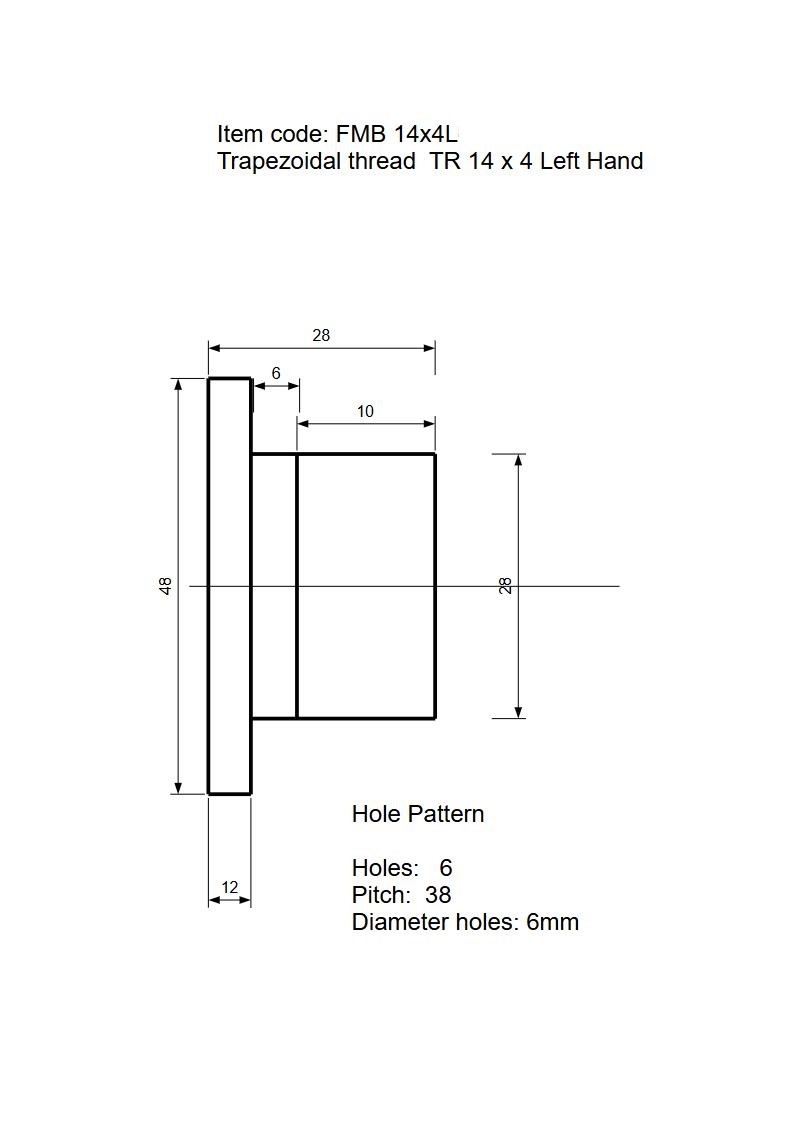 ADC1218 Adapter Console KONA voor trapeziumdraad flensmoer FMB 12×3 t/m FMB 18×4