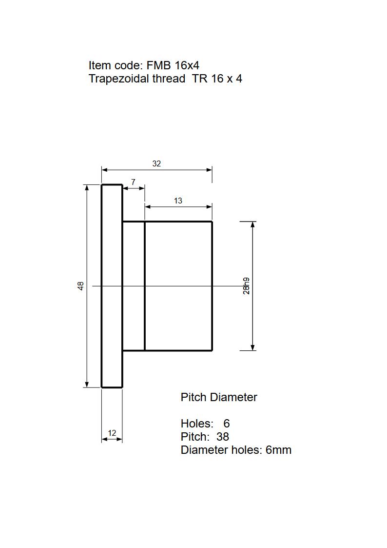 • Afmeting trapeziumdraad moer