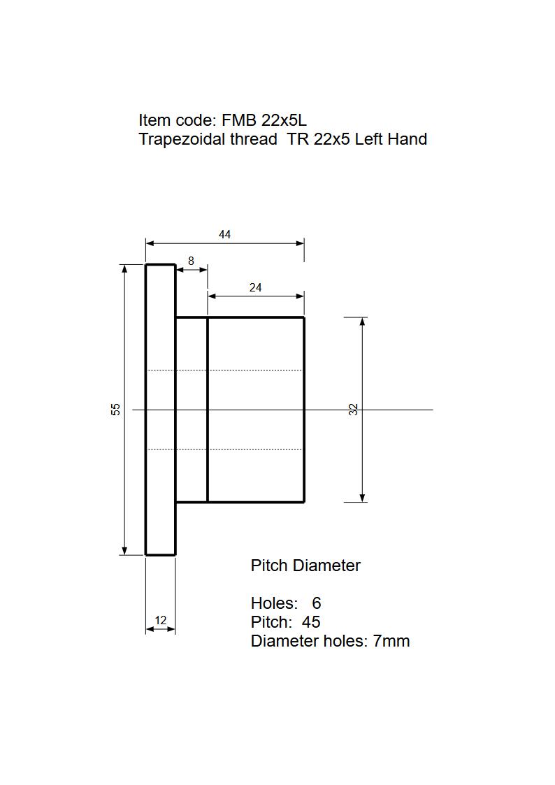 Home » Producten » Flensmoer brons TR22x5 Linkse draad
